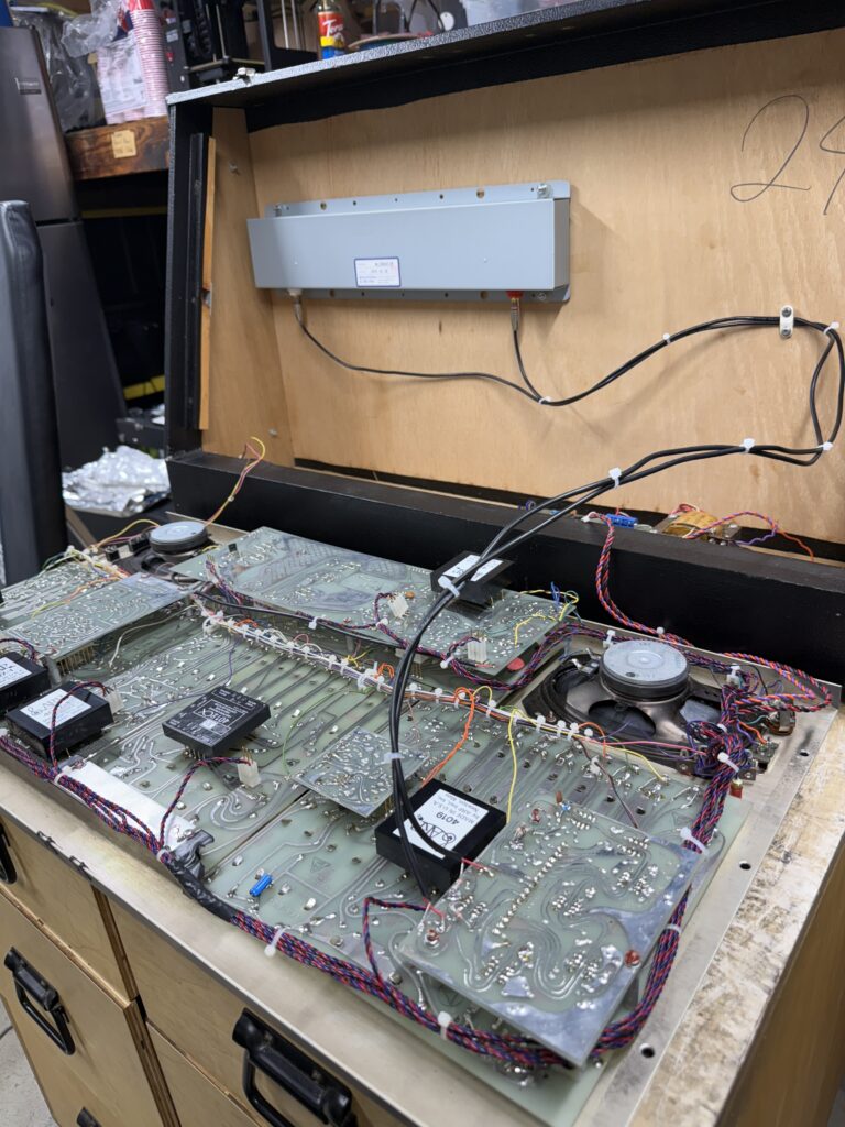 A bit of a wider shot of much of the same to show how the reverb cabling was re routed and affixed to the back of the console to allow for a service loop and easy time closing the unit and not allowing the wires to commingle too close to the PSU.